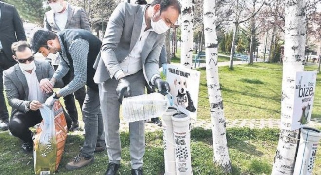 AK PARTI Ankara İl Gençlik Kolları üyeleri, sokak hayvanları için parka mama ve su bıraktı.