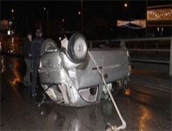 Köprü bariyerlerine çarpıp takla atan otomobil sürücüsünün annesi fenalık geçirdi.