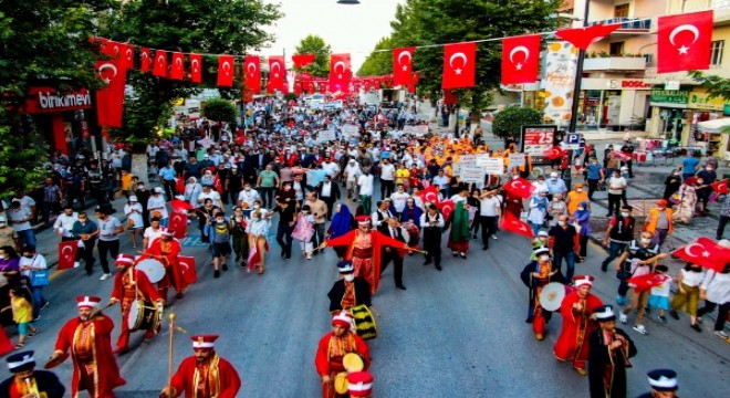 Büyükşehir Belediyesi Mehteran Takımının çaldığı marşlar eşliğinde Türk Bayrakları ile gerçekleştirilen kortej yürüyüşünün yapıldığı alanda vatandaşlar evlerinin balkonlarına çıkarak kortej yürüyüşüne alkışlarla destek verdi. Halk oyunları ekiplerinin halaylarla eşlik ettiği kortej yürüyüşüne, çok sayıda sporcu ile birlikte Yazıhan Atlı Cirit ekibi de katılarak renkli görüntüler yaşattı.