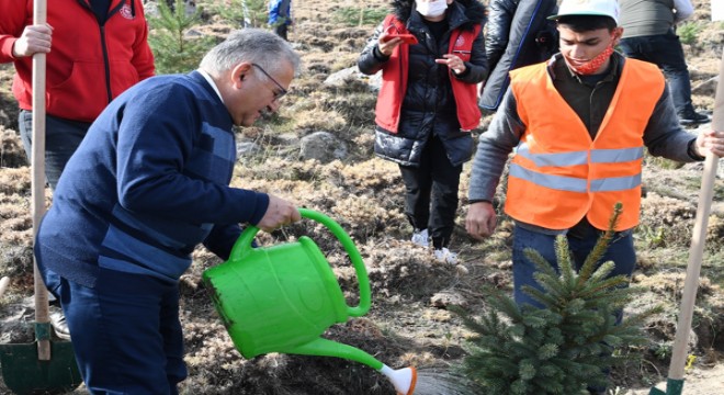 Ağaç olan, orman olan yerde bir yaşam döngüsü olacağını belirten Büyükkılıç, “Büyükşehir Belediyesi olarak son üç yılda, her yıl 100 bin fidan olmak üzere toplam 300 bin fidan diktik. Öte yandan 2021 yılında Büyükşehir fidanlığımızda yetiştirdiğimiz 35 bin 950 ibreli fidanı, 6 bin 662 yapraklı fidanı, 316 bin 91 adet süs bitkisi ve çalı gurubu fidanını toprakla buluşturduk. Bunun yanında Gesi Vadisi’nde 10 bin sarıçam fidanı dikimini gerçekleştirdik. Ayrıca Derevenk Viyadüğü yamaçlarında susuz bitki yetiştirme aparatı ile diktiğimiz bin adet sedir ağacının, yüzde 85 başarı oranı ile tuttuğunu gördük. Susuz bitki yetiştirme aparatına ilk kurulum anında 16 litre su konularak bir döngü ile başlatılması sayesinde fidanlar, dikildiği günden itibaren herhangi bir sulama yapmadan büyüdü. Kısacası daha yeşil bir Kayseri için çalıştık. Bu çalışmalarımız artarak devam edecek ve daha yeşil bir Kayseri’yi gelecek nesillere bırakacağız” ifadelerini kullandı.