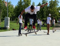 ANKARA / Dünya Kaykay Günü etkinlikleri kapsamında Çayyolu’nda toplanan 200’e yakın kaykay sporcusu, birbirinden ilginç hareketlerle izleyicilere keyifli anlar yaşattı. Ankara’da yaşayan Vans Kaykay Takımı’nın sporcusu Cenk Kuli, bireysel çabaları parkur oluşturup, Dünyü Kaykay Günü’nde etkinlik düzenledi. Kuli, “Tüm dünyada kutlanan bu özel gün için, Amerika’da bir cadde kapatılıyor, diğer ülkelerde de benzer uygulamalar yapılıyor. Biz ise eskiden var olan ve yıkılan parkurumuza çöpten bulduğumuz tahta kutu, arkadaşımızın babasından aldığımız demir parçası ve betonlarla bir yoktan pist yarattık” diye konuştu.