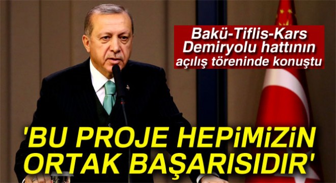 “Bakü-Tiflis-Kars Demiryolu (BTK)” hattının açılışına katılan Erdoğan, “Kararlılığımızın ve vizyonumuzun eseri olan bu proje hepimizin ortak başarısıdır” dedi.