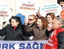 Türk Sağlık Sen’e bağlı üyeler “Ne Zulüm Ne Merhamet, Yaşasın Adalet”, “Adalet Güzeldir” yazılı dövizler taşıdı ve “Türkiye Sevdamız, Ekmek İçin Kavgamız”, “Çalışanla Oynama Hesap Verirsin”, “Aldatma, Kandırma Sabrımızı Taşırma” şeklinde slogan atarken, aynı anda SES üyeleri ve destek veren sağlık çalışanlarınca “Köle Değil Hemşireyiz”, “Döner Sermaye Hakkımız Söke Söke Alırız” dövizleri açtı ve “Çok Ses Tek Yürek”, “Performans Sağlığa Zararlıdır” sloganları attı.