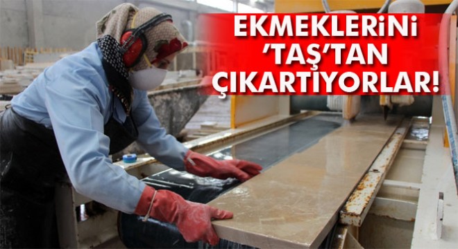 Bir tezgahın başında iki kişi çalışıp her biri 25 kiloya yaklaşan ağırlıktaki mermer kütlelerini arkadaşlarıyla birlikte tezgaha yüklediklerini anlatan 35 yaşındaki 2 çocuk annesi Aysel Savaş ise, “Zor yanları da var ama biz işimizden memnunuz. Ekmeğimizi taştan çıkarmaya çalışıyoruz. Maskelerimizi, kolluklarımızı, önlüklerimizi takıyoruz. Makinemizin başında sipariş nasılsa ona göre kesim yapıyoruz” şeklinde konuştu.