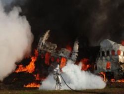 Bu arada, tatbikatın başında uçak enkazı tutuşturulduğu sırada patlama meydana geldi. Patlama, tatbikatı izleyenler arasında heyecana neden oldu.