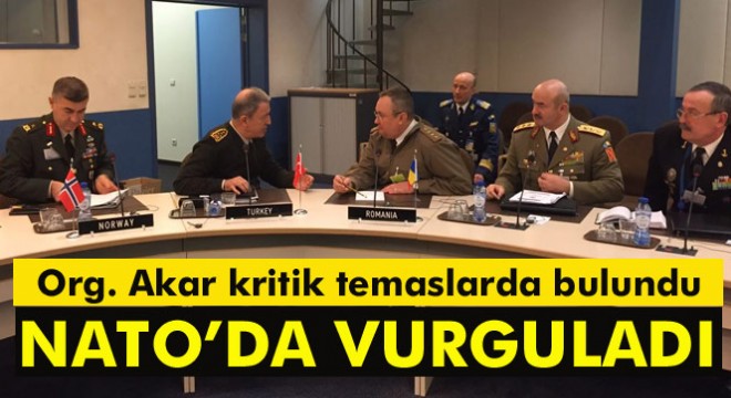 Akar’ın toplantı kapsamında gerçekleştirdiği temasların belirtildiği açıklamada, “Orgeneral Akar 18 Ocak 2017 tarihinde toplantı kapsamında Askeri Komite üyelerini, Fırat Kalkanı Harekatı, Irak kuzeyi ve bölgenin gerçekleri hakkında bilgilendirmiş ve NATO’nun terörle mücadele kapsamında Türkiye’ye daha fazla destek vermesi gerektiğini vurgulamıştır” ifadelerine yer verildi.
