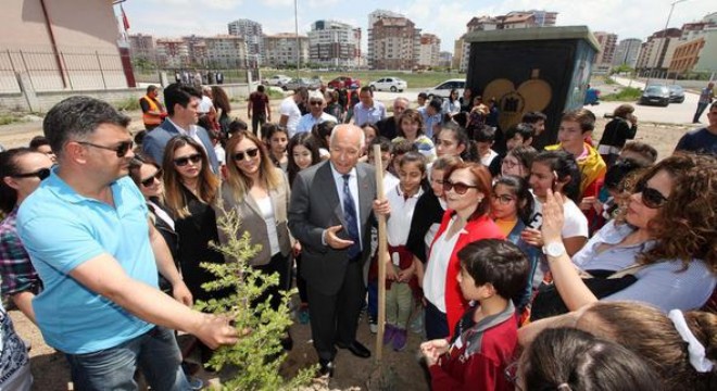 Yenimahalle Belediye Başkanı Fethi Yaşar, Mektebim Koleji öğrencileriyle birlikte 150 çam fidanını toprakla buluşturdu.