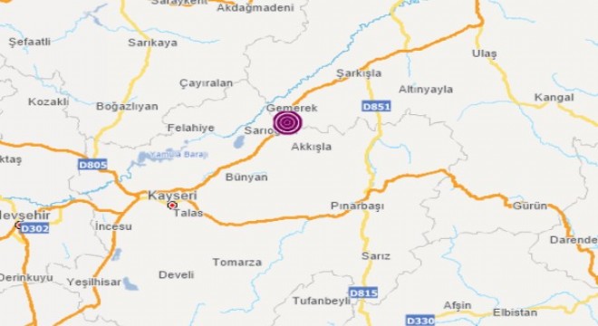 Kayseri'de 4,6 büyüklüğünde deprem.