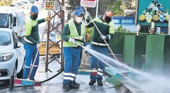 KEÇİÖREN Belediyesi Temizlik İşleri Müdürlüğü tarafından ilçedeki 51 mahallede yürütülen detaylı temizlik çalışmaları 24 saat esasına göre devam ediyor. Bu kapsamda Emrah Mahallesinde 5 cadde, 13 sokak ve 14 muhtelif noktada yürütülen temizlik çalışmalarıyla hem yıkama hem de dezenfekte çalışması yapıldı. Ayrıca dezenfekte ekipleri birçok binanın iç kısımlarını da dezenfekte ederek vatandaşların ortak kullanım alanlarını daha sağlıklı hale getirdi. Keçiören Belediye Başkanı Turgut Altınok, "Çevre Koruma ve Kontrol Müdürlüğü ekiplerimiz de bu noktalarda dezenfekte çalışması yürütüyor" dedi.