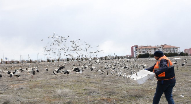 Konya Büyükşehir Belediyesi, göç esnasında olumsuz hava şartlarından etkilenerek şehir merkezine konan leylekleri balıkla besliyor.Konya Büyükşehir Belediye Başkanı Uğur İbrahim Altay, son yılların en soğuk mevsiminin yaşandığını hatırlatarak, sevgi ve merhamet şehri Konya’da olumsuz hava şartlarından etkilenen doğadaki tüm canlılara kucak açtıklarını ifade etti.Göç esnasında Konya semalarından geçerken fırtınaya yakalanan ve şehir merkezine inmek zorunda kalan binlerce leyleğin beslenmesini de sağladıklarını kaydeden Başkan Altay, “Misafirlerimiz, fırtınanın geçeceği süreye kadar şehrimizde konaklayacaklar. Konya Büyükşehir Belediyesi olarak biz de leyleklerin aç kalmamaları için onları balıkla besliyoruz. Fırtına devam ettiği sürece misafirlerimizi beslemeye devam edeceğiz.” ifadelerini kullandı.