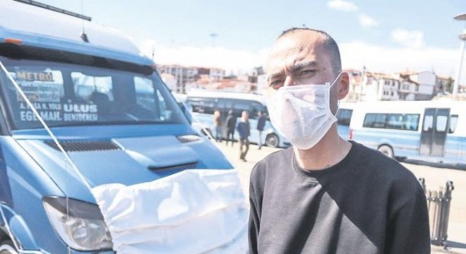 ANKARA'DA bir dolmuş şoförü, korona virüse dikkat çekmek amacıyla dolmuşuna maske taktı.