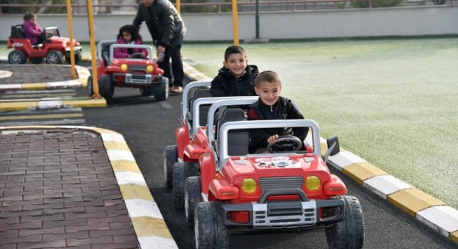 Yaklaşık 30 öğrenciye trafik hakkında bilgiler veren belediye personeli, trafikkurallarını slayt gösterisi şeklinde anlattı. Trafik dersinde emniyet kemeri üzerinde durulurken öğrenciler, ilk sürüş deneyimlerini simülatör araçta gerçekleştirdi. Daha sonra piste çıkan öğrenciler, akülü araçlara binerek sürüş eğitimlerine uygulamalı bir şekilde devam etti.