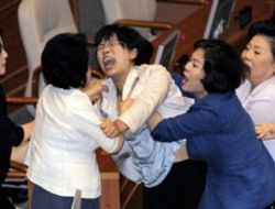 Vekillerinin birbirlerini itip kakmaları ve bağırmalarıyla başlayan karmaşaya kadın vekilleri de katıldı. Rakip partilerin kadın vekilleri birbirlerini boyunlarından tutarak yere çalmaya çalıştı. Kavgada bazı vekiller yaralanırken, bir kadın vekil hastaneye kaldırıldı. Güney Kore’nin 294 üyeli meclisinde iktidarın 169, ana muhale-fetteki Demokratik Parti’nin ise 84 sandalyesi var.