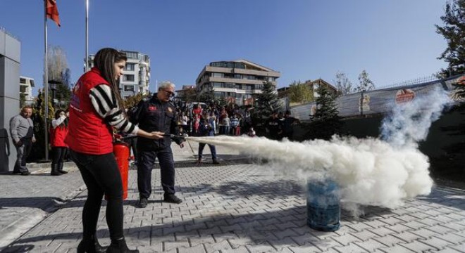 Çankaya Gençlik Merkezi’ndeki tatbikatta öğrencilere deprem ve yangın anında nasıl hareket etmeleri gerektiği anlatıldı. Ankara Büyükşehir Belediyesi İtfaiye Amiri Nurettin Ayvaz, yangının çıkış yolları, yangın anında yapılacaklar, yangına müdahale etme yöntemleri ve yangın söndürme tüpünün kullanımı hakkında genel bilgi verdi.