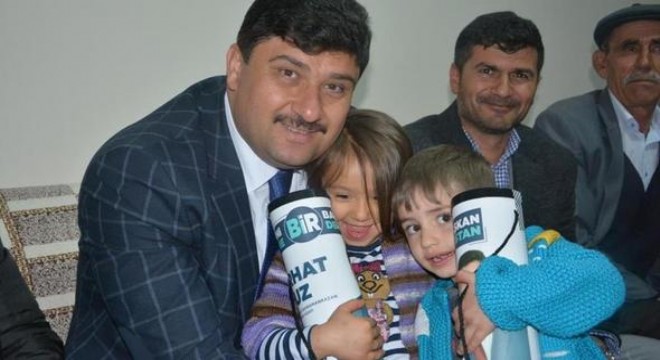 AK Parti Kahramankazan Belediye Başkan Adayı Serhat Oğuz, seçim çalışmaları kapsamında yaptığı ziyaretler sırasında çocuklara satranç takımı hediye ediyor.
