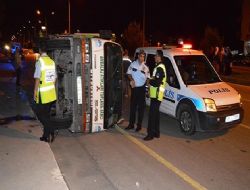 Refüje çarptı yan yattı