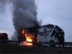 Seyir halindeki yolcu otobüsü alevlere teslim