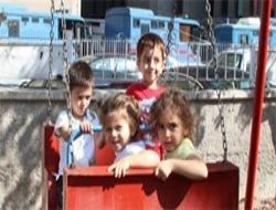 Adliye’de Ağır Ceza Mahkemesi girişinin hemen yanında bulunan Gündüz Çocuk Bakımevi’nde çocuklar, bahçede oyun oynarken sanık yakınlarının taşlı sopalı ya da silahlı kavgalarına şahit oluyor.