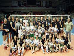 ANKARA / Çankaya Belediyesi’nin Yaz Spor Okulları’na giden minik voleybolcular, 2014 World Grand Prix müsabakaları öncesinde Filenin Sultanları’na moral desteğinde bulundu.