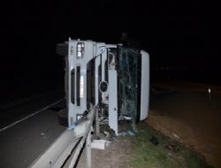 ANKARA / Bariyerlere çarpan TIR, yaklaşık 70 metre sürüklendikten sonra yolun kenarına devrildi. Sürücünün yara almadan kurtulduğu kazada, TIR’daki 25 ton arpa çevreye saçıldı. Yol, dökülen arpanın Karayolları ekibi tarafından temizlenmesinin ardından trafiğe açıldı. TIR sürücüsü Hodoğlu, seyir halindeyken birden direksiyon hakimiyetini kaybettiğini, aracı sol şeritte bulduğunu ve devirdiğini söyledi.ANKARA /