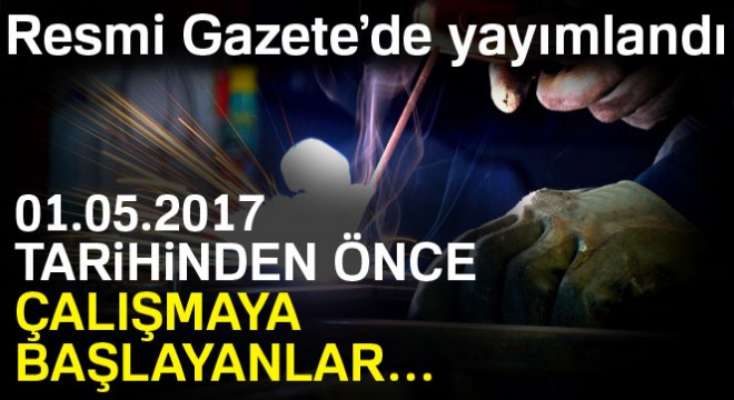 Resmi Gazete’nin bugünkü sayısında yayımlanan yönetmeliğe göre; tehlikeli ve çok tehlikeli sınıfa giren işlerde, Sosyal Güvenlik Kurumuna (SGK) ait kayıtlar esas alınarak 01.05.2017 tarihinden önce çalışmaya başlayanlar, Milli Eğitim Bakanlığı (MEB) ile ilgili kurum ve kuruluşlar arasında yapılacak protokoller çerçevesinde verilecek en az 32 saatlik eğitim modüllerini tamamlayarak belgelendirilmeleri halinde bu Yönetmelik kapsamında mesleki eğitim almış olarak kabul edilecek.