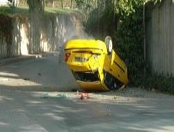 Kazım Karabekir Caddesi’ne dönen 06 T 6694 plakalı taksi sürücüsü, virajı alamayarak köprülü kavşaktan uçtu.