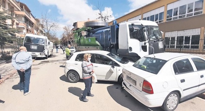 Ankara’da sürücüsü araçtan indikten sonra hareket eden Büyükşehir ASKİ’ye ait bir vidanjör park halindeki 6 araca çarparak durabildi